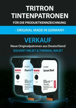 In der heutigen Industrieproduktion sind Effizienz und Präzision entscheidend. Wir sind Vertriebspartner der TRITRON Tintenpatronen. Die speziell entwickelten HP 45Si (Solvent Black) und HP 45A (Water Black, Pharma Black) Tintenpatronen von TRITRON bieten Ihnen eine zuverlässige Lösung für den unternehmerischen Alltag, die hohe Druckqualität mit Wirtschaftlichkeit vereint. Unser Sortiment umfasst eine Auswahl an Inkjet-Tinten und Kartuschen für industrielle Drucksysteme und Handdrucker die gezielt darauf ausgelegt sind, die Produktivität bei der Beschriftung und Codierung zu steigern. Unsere Tintenpatronen können in Drucksysteme der Hersteller: HSAJET, Bluhm / Markoprint, REA Jet, Domino, Videojet, Bell Mark. Elried / Edding, Wipotec und vielen anderen eingesetzt werden.